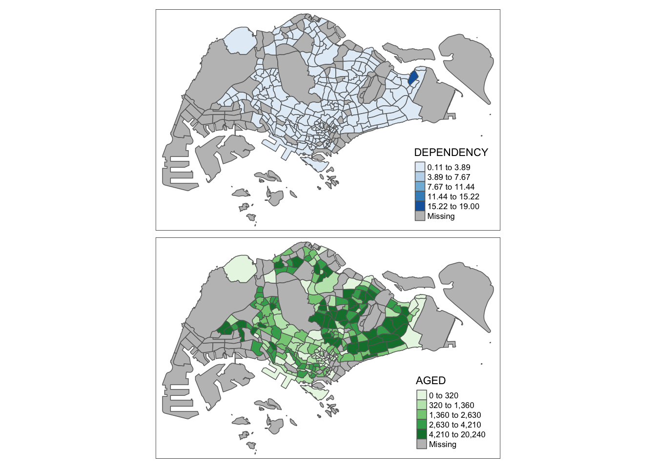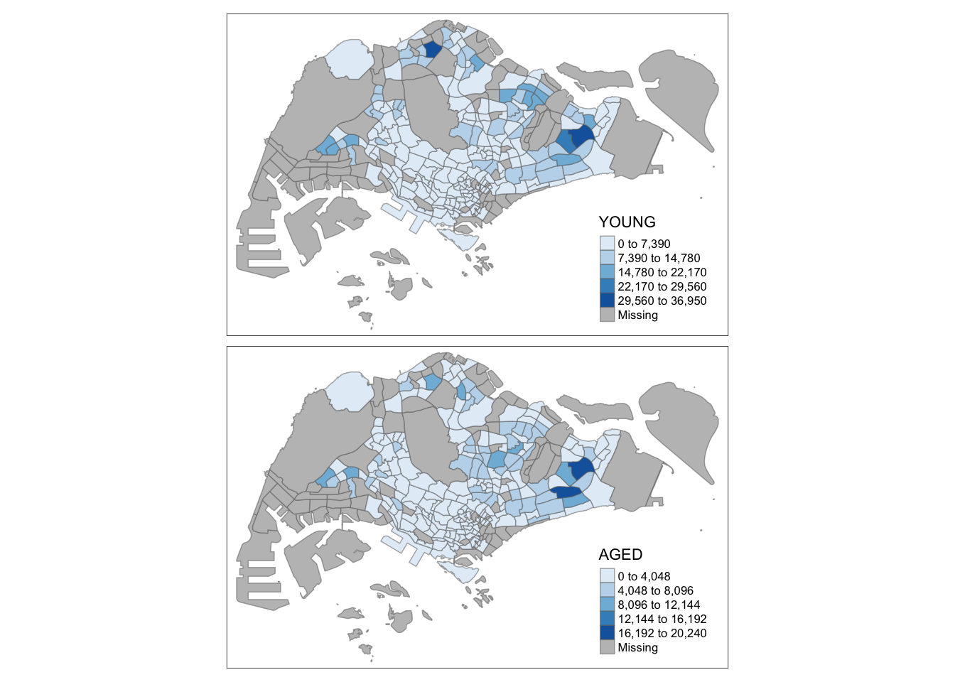Before we prepared for a thematic map, we would need to prepare a data table with year 2020 values. The data table should include the variables PA, SZ, YOUNG, ECONOMY ACTIVE, AGED, TOTAL, DEPENDENCY.