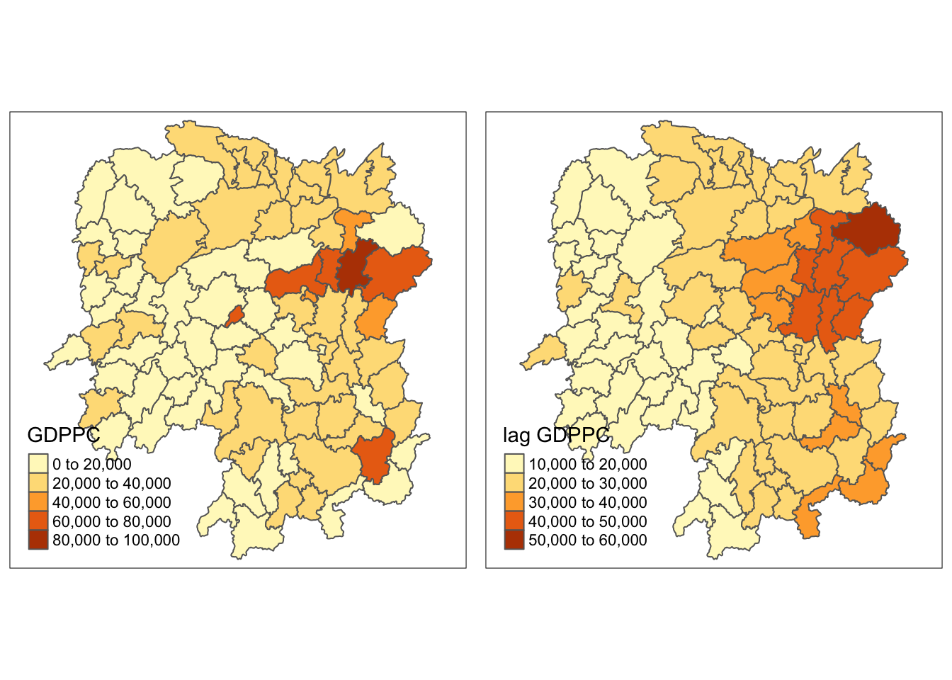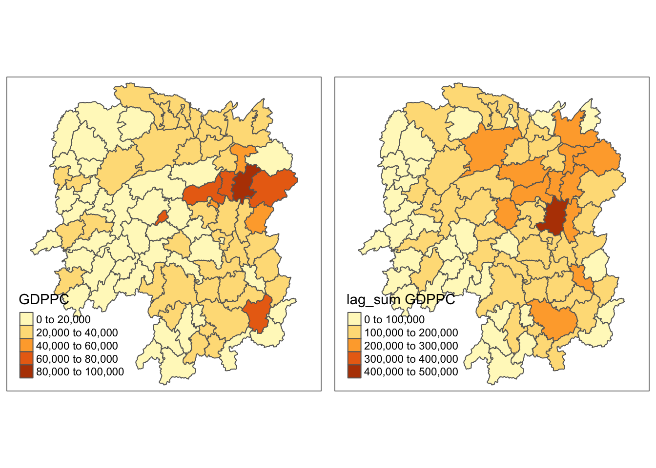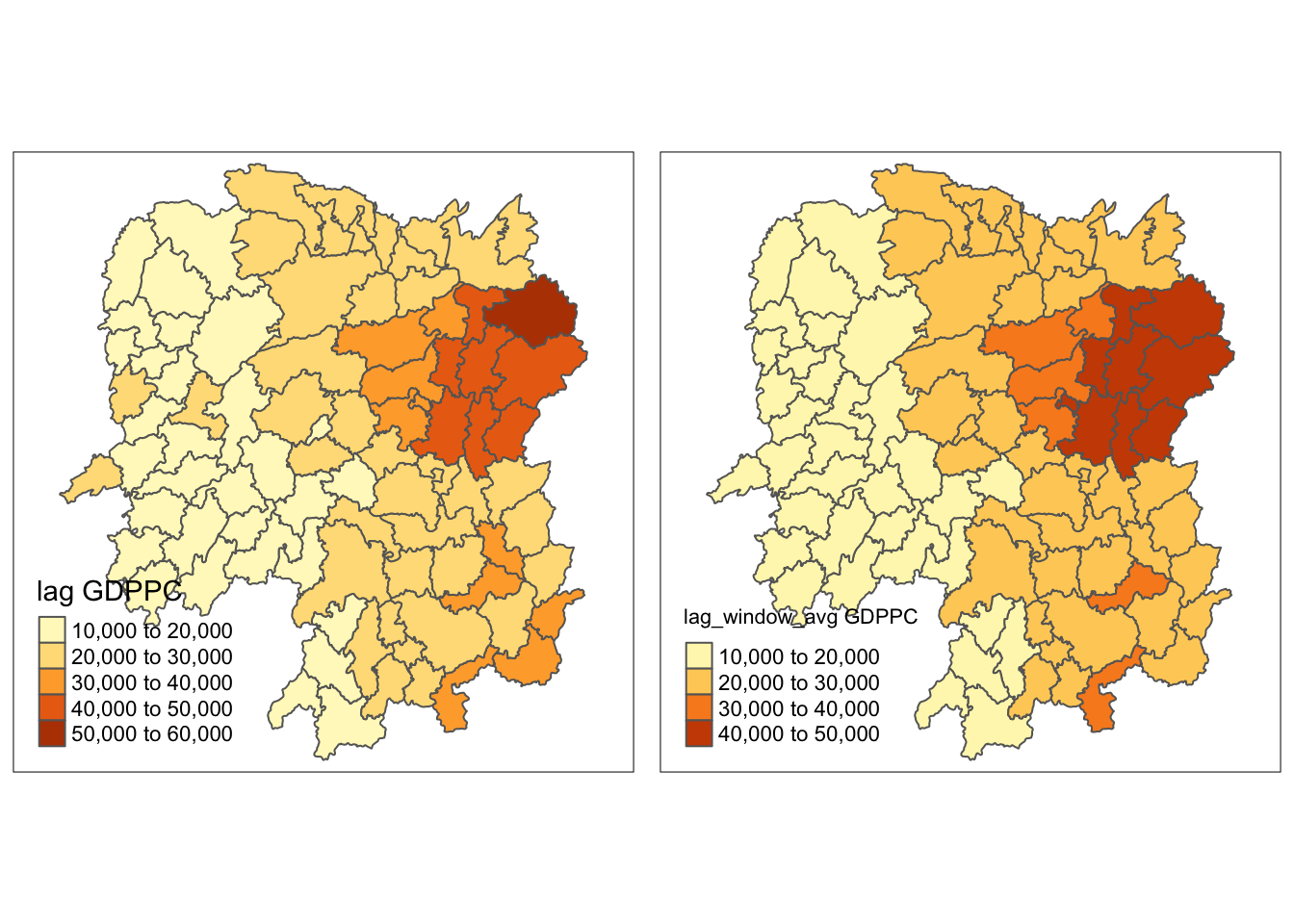 kable()| County | lag_sum GDPPC | w_sum GDPPC | geometry |