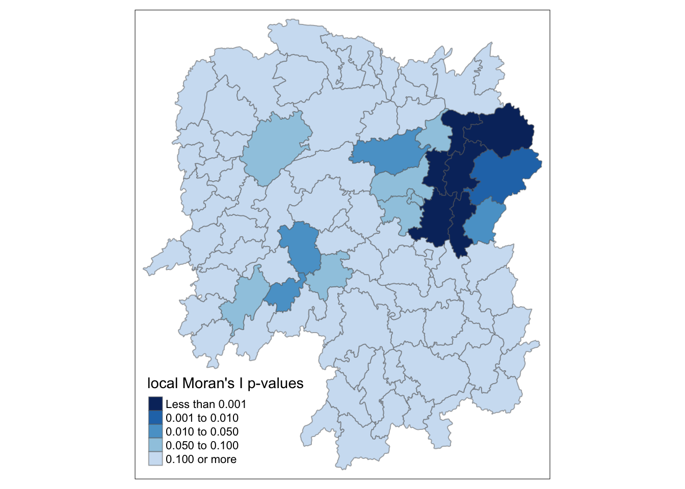 “Pr()” : the p-value of local moran statistic
