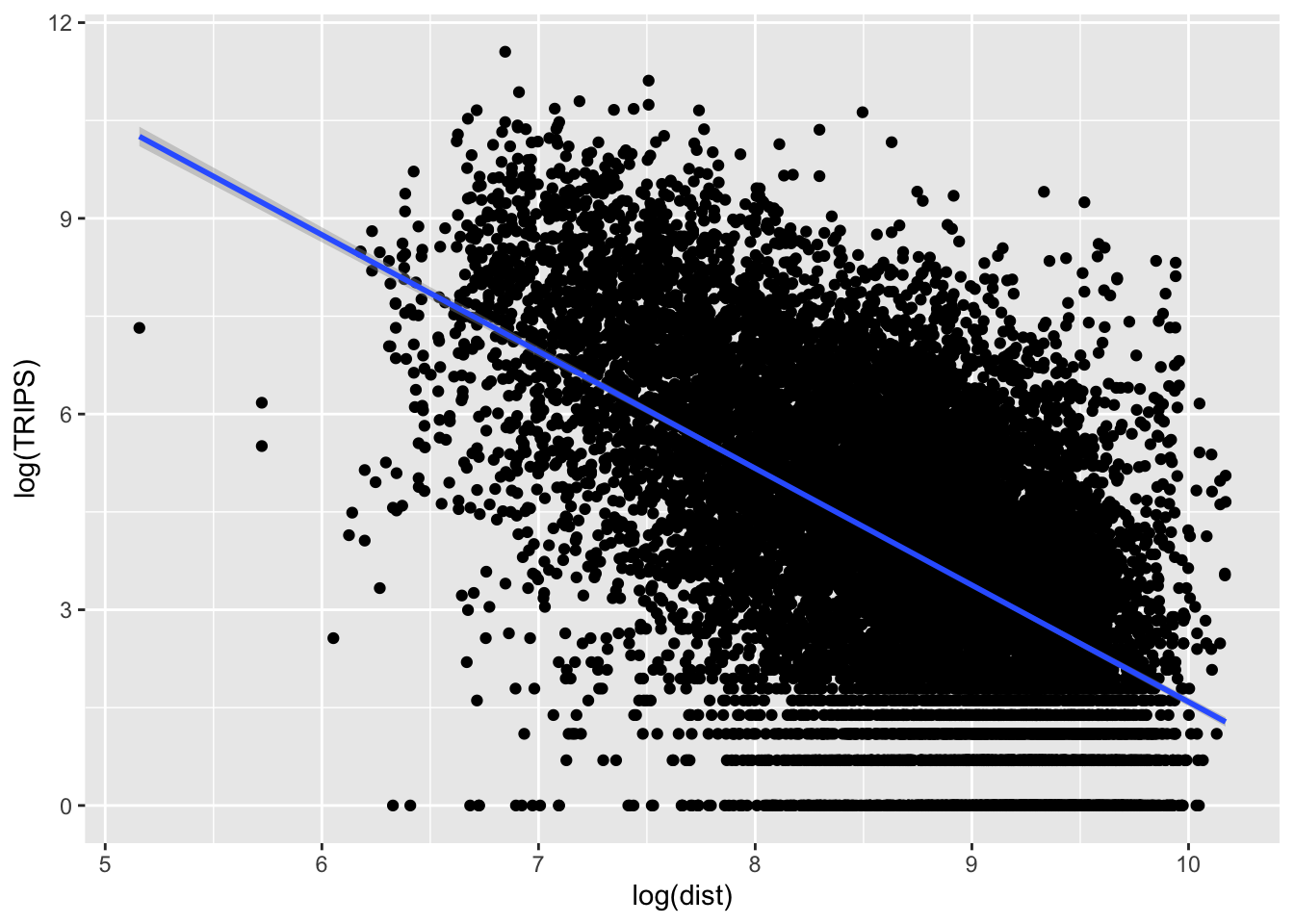 rename(decTRIPS = "decSIM$fitted.values")Repeat the same step by for Doubly Constrained SIM (i.e. dbcSIM)