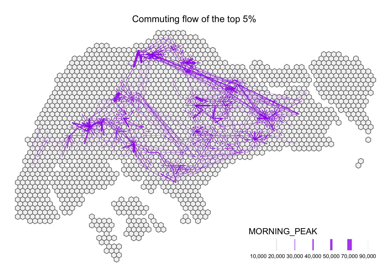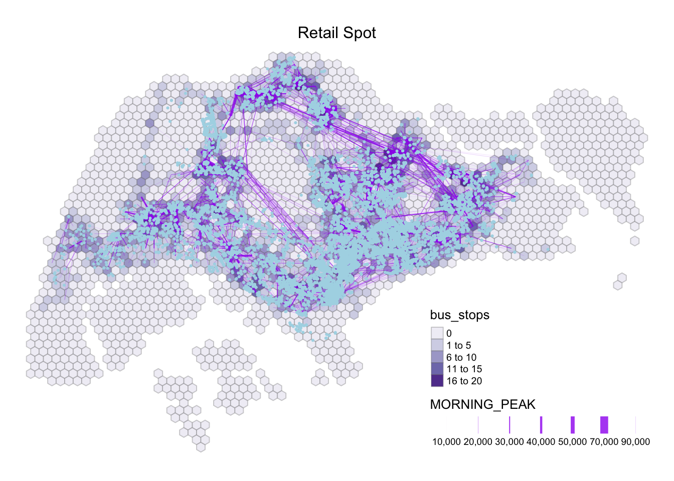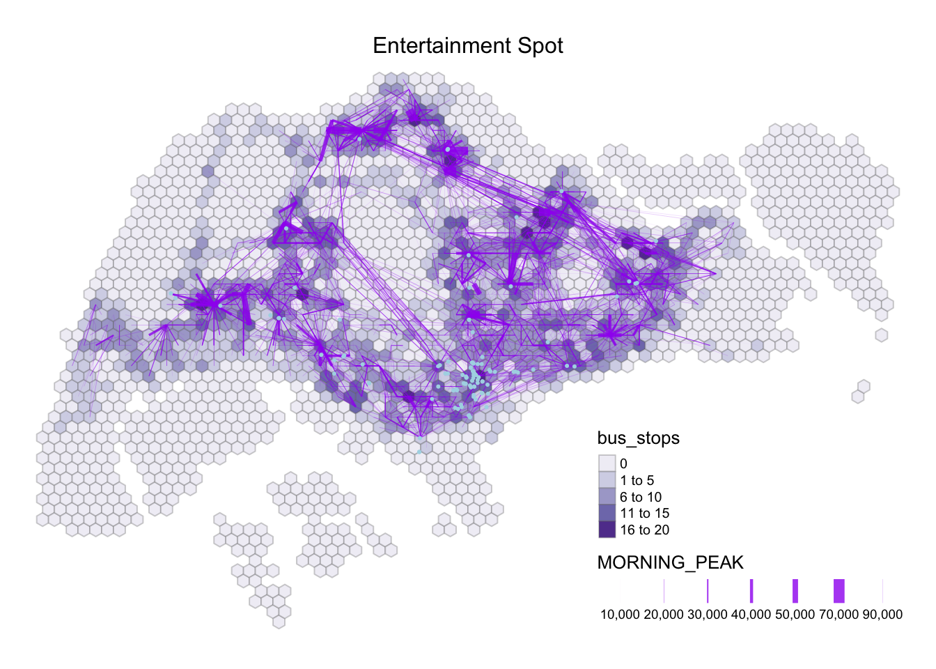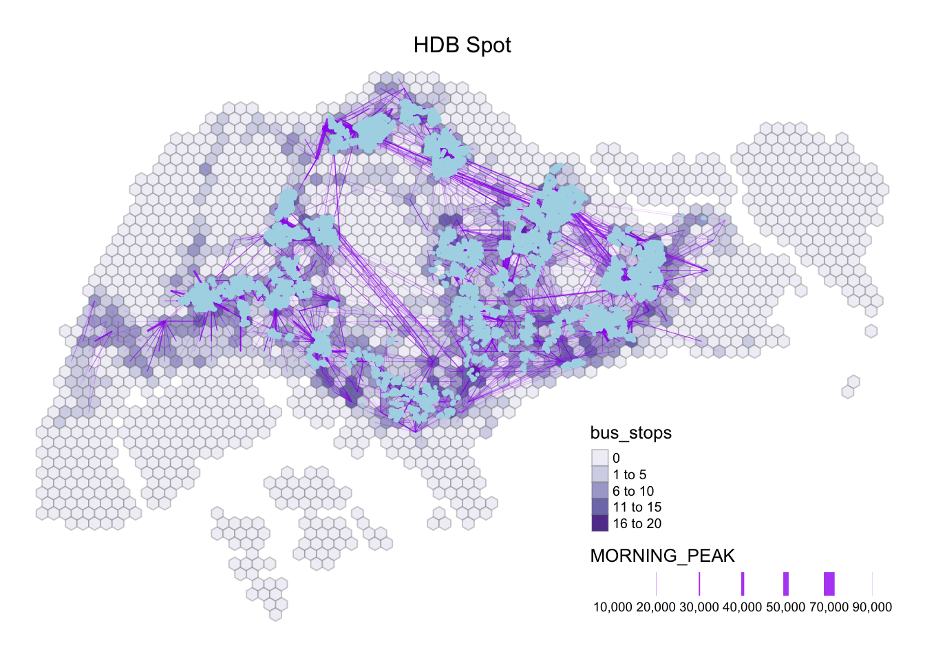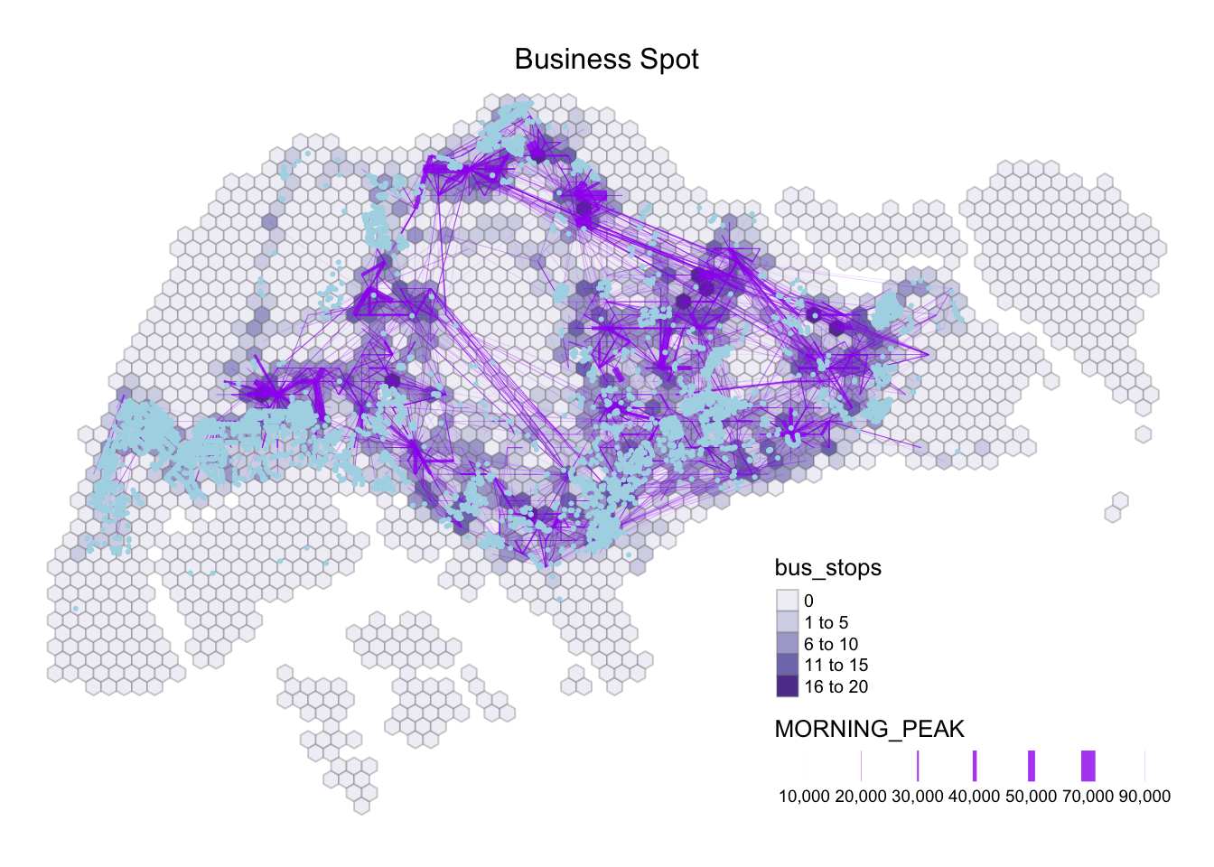 In our exercise, we examine the urban mobility patterns of commuters on the time period of Weekday Morning 0600 -0900 by looking at the explanatory variables - Business, Financial Service, HDB, Retail, and School based on hexagonal grid. We used Spatial Interaction Models and found out that the Doubly Constrained SIM yields better results in R2 and RMSE.